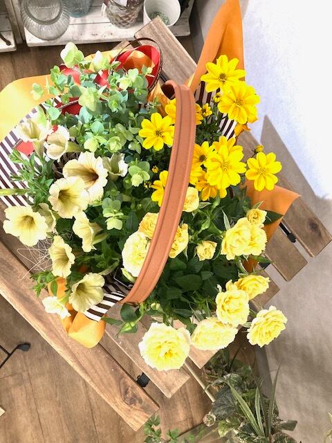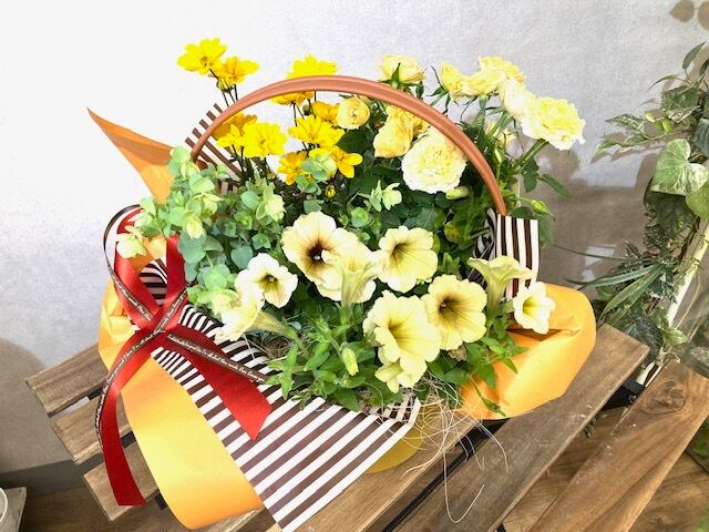 母の日ギフト イエロー ”Happy Mother’s Day” お花のギフト お花のもりかご 季節のお花 プレゼント present gift 花束の代わりに