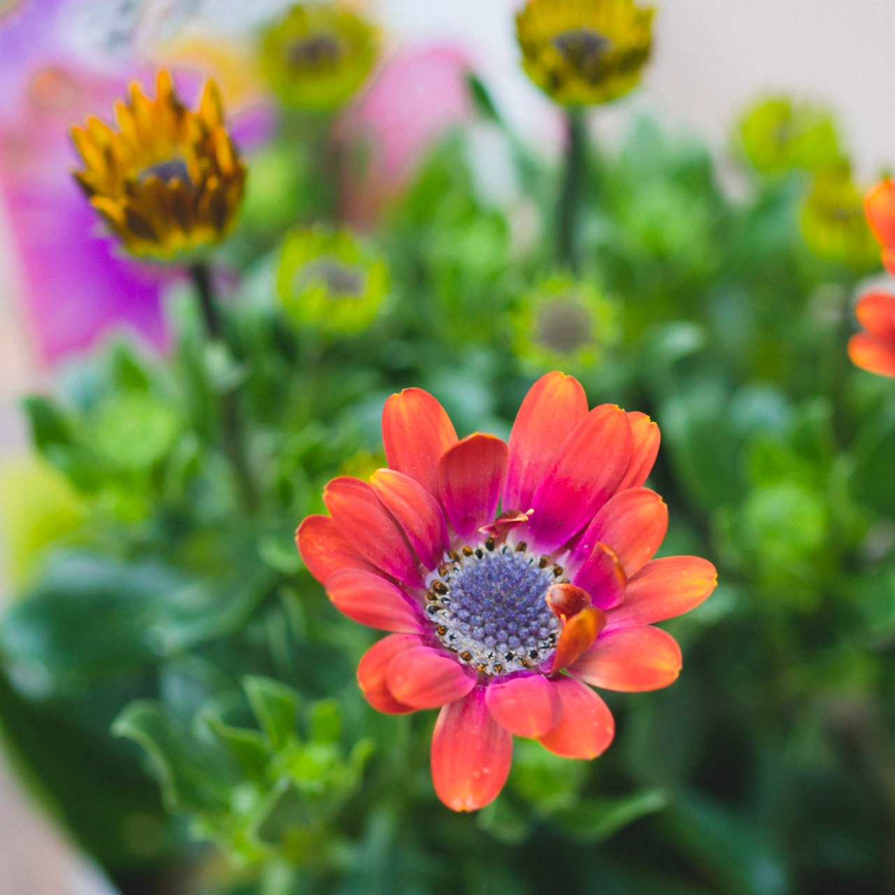 オステオスペルマム マスカレード●注目を集める個性的なグラデーションカラー●花数もよく一株で色々なカラーをたのします