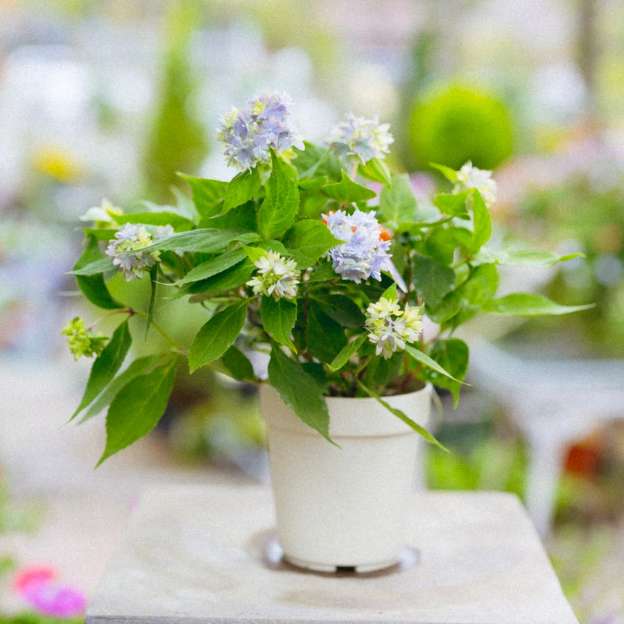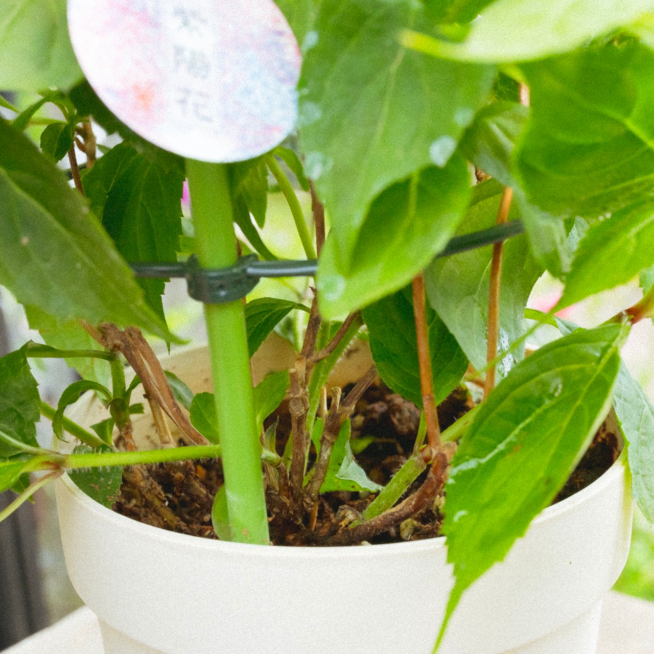 青い花色にしたい場合は土の状態を酸性(ピートモスを加える)に傾けてください。