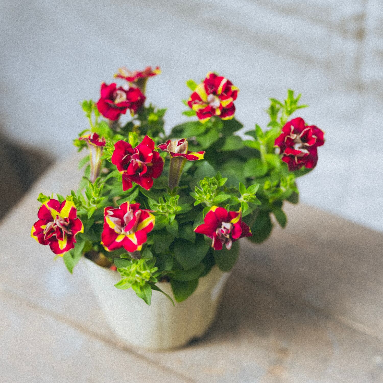 ペチュニア マキアージュ レッド●強健で育てやすい 白と赤のコントラストが素敵なぺちゅにあ 非耐寒性 多年草 花期長い ハンギング 3.5号 母の日