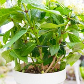 青い花色にしたい場合は土の状態を酸性(ピートモスを加える)に傾けてください。