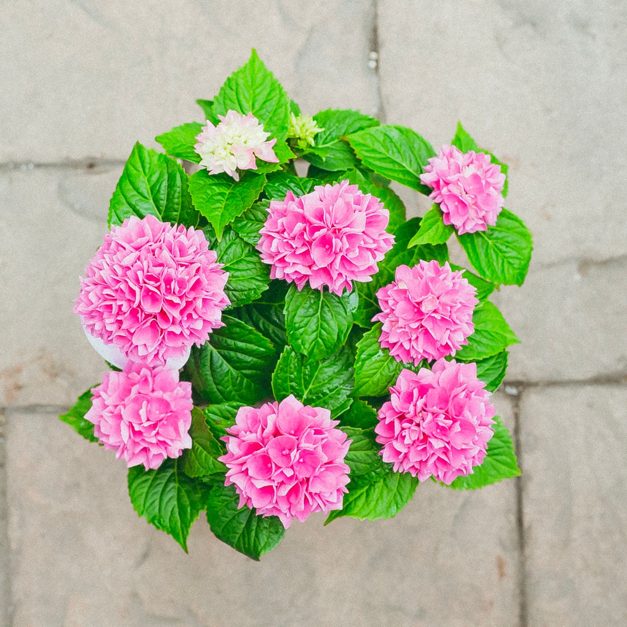 夕焼け空に浮かぶ雲を彷彿とさせる手まり咲きのアジサイで、