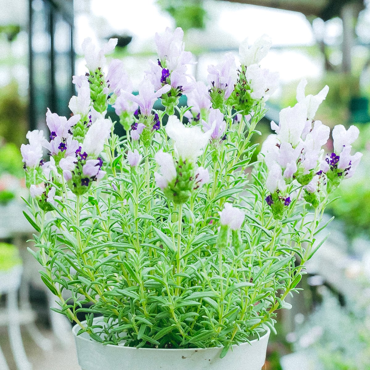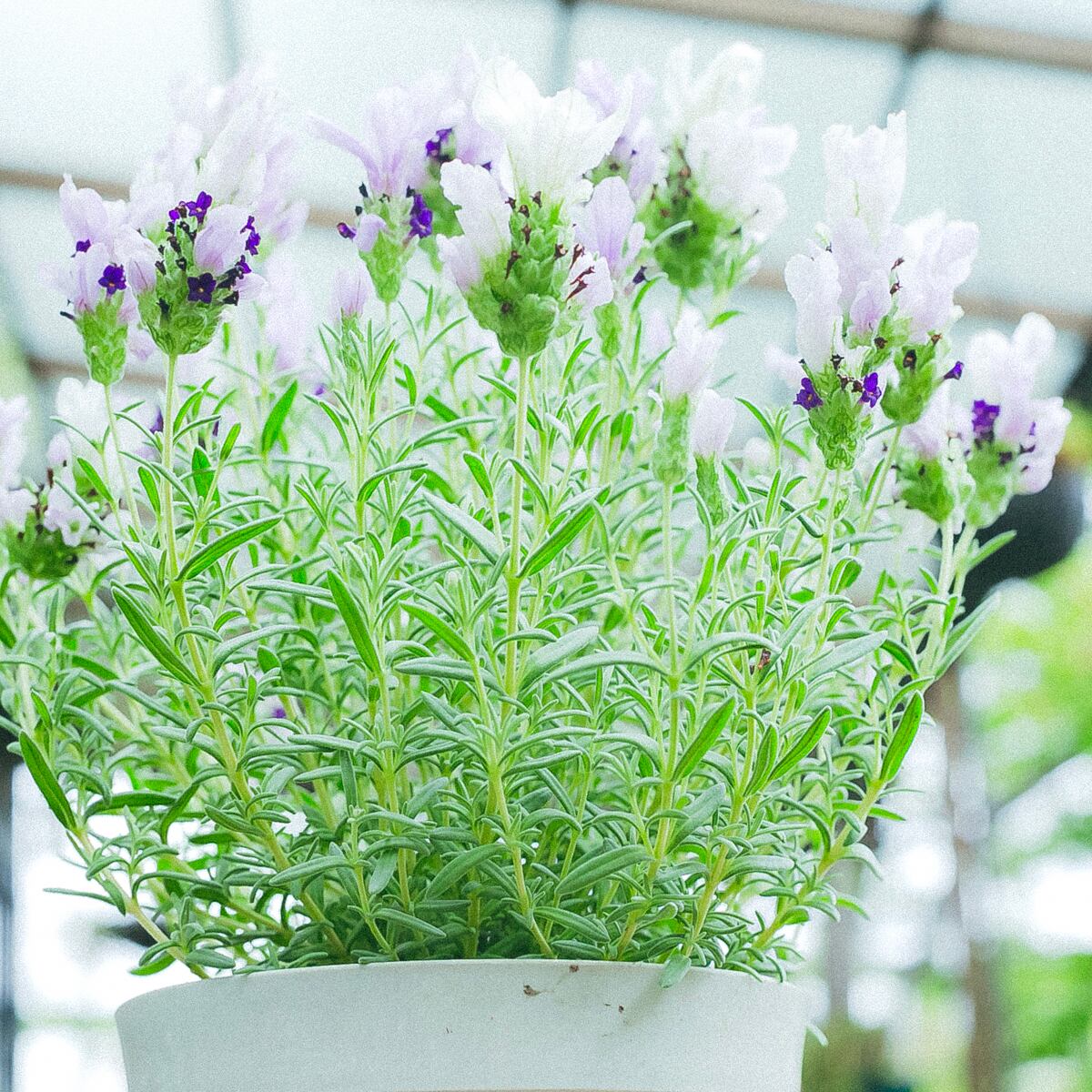 こちらのフレンチラベンダーは横からも飾り花が咲くタイプです