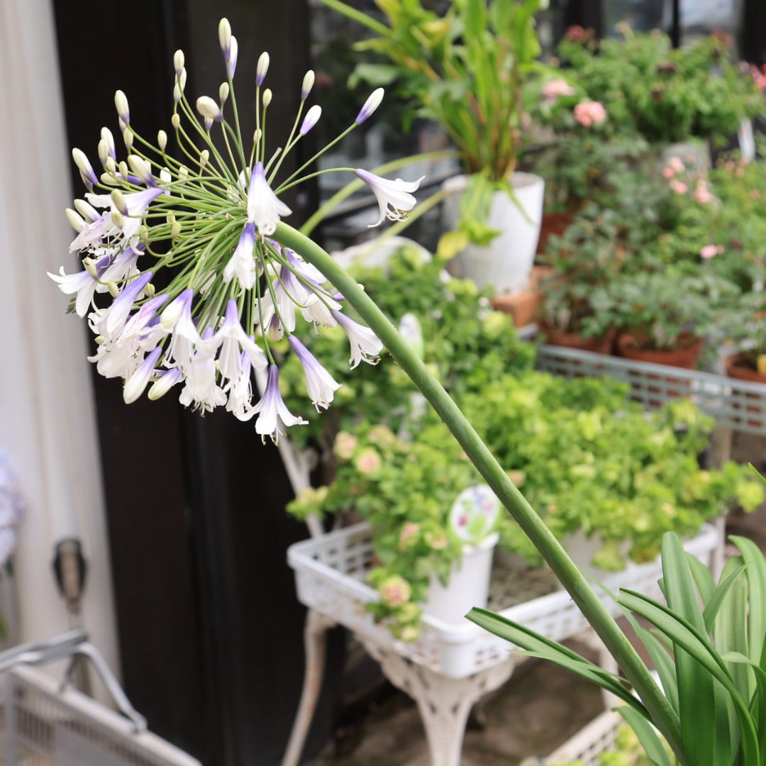 コンパクトで、花色が紫と白のバイカラーのアガパンサス。