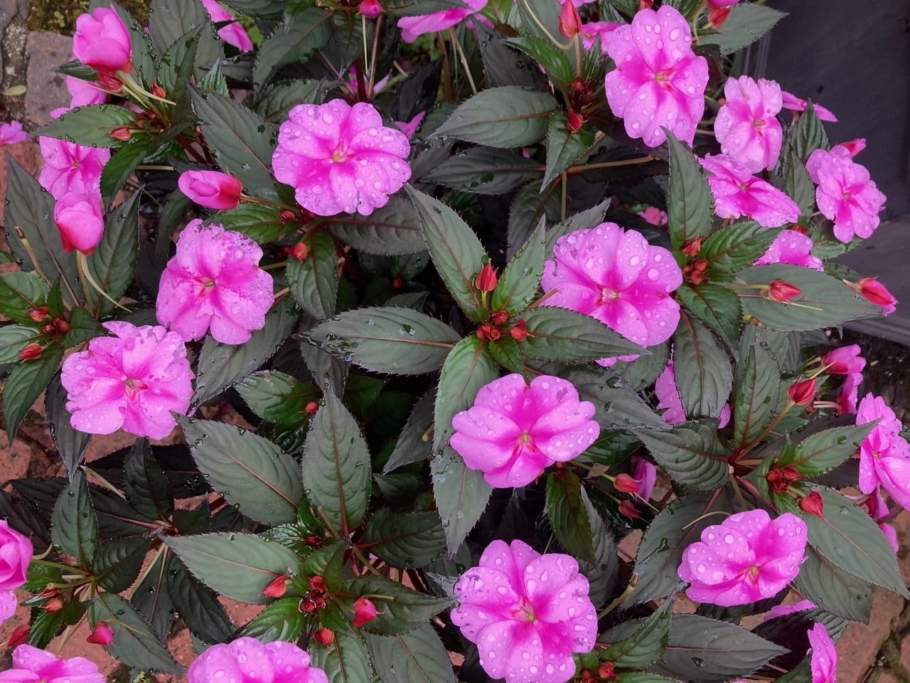 一般的なインパチェンスと比べると背丈が高く育ち、葉や花が大きい、豪華な印象です。