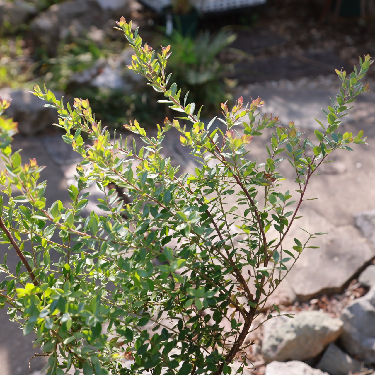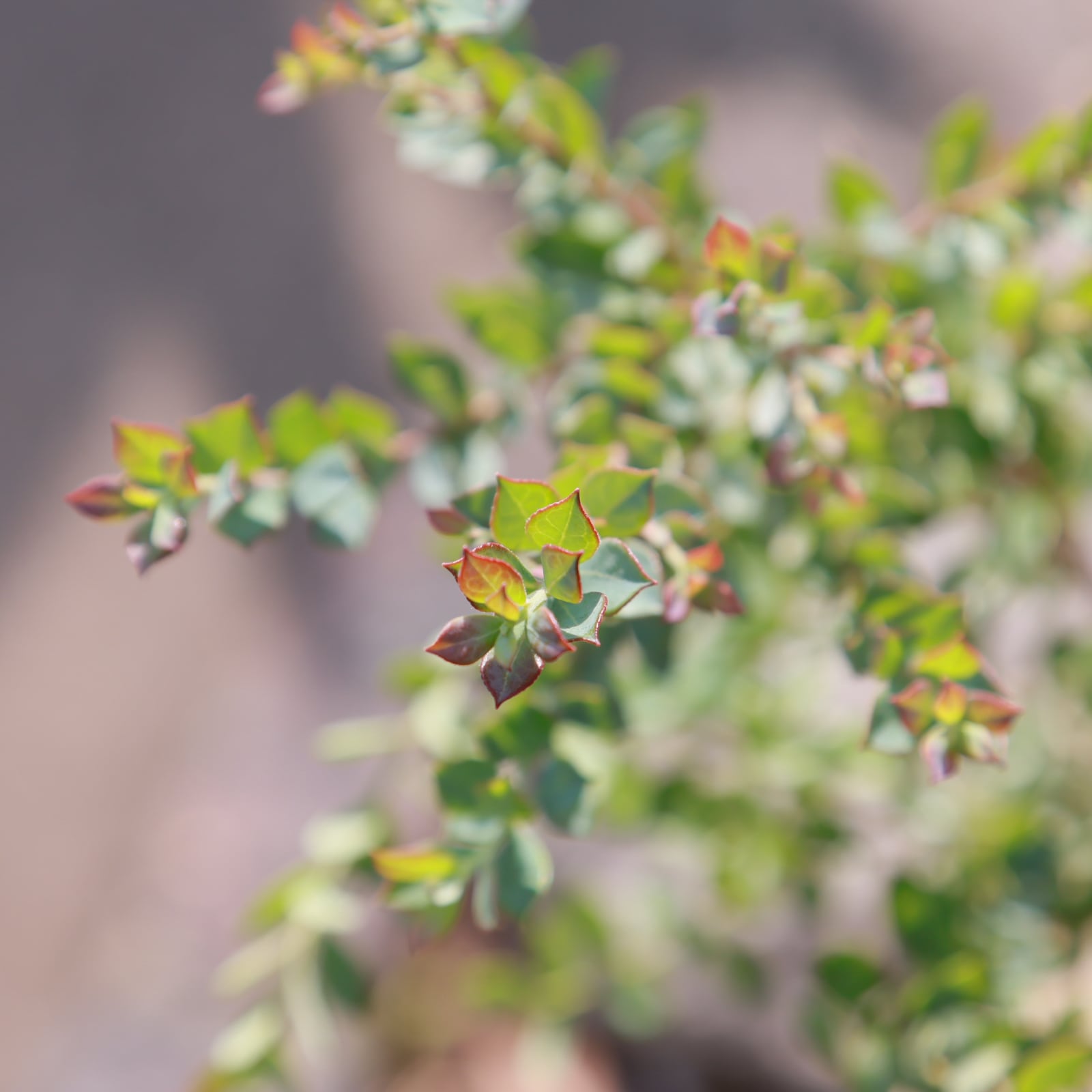 春から夏に向かっての新葉のピンクのハイライトカラーが入り、シルバーブルーの葉のコントラストになります。秋には赤く紅葉し、冬には深い青色へと変化していきます。