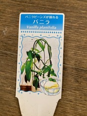 バニラは、ラン科の非耐寒性多年草です。グリーン系の花が咲き、その後に実をつけますが、これを熟成させたものがバニラアイスなどの香料としても有名なバニラビーンズです。